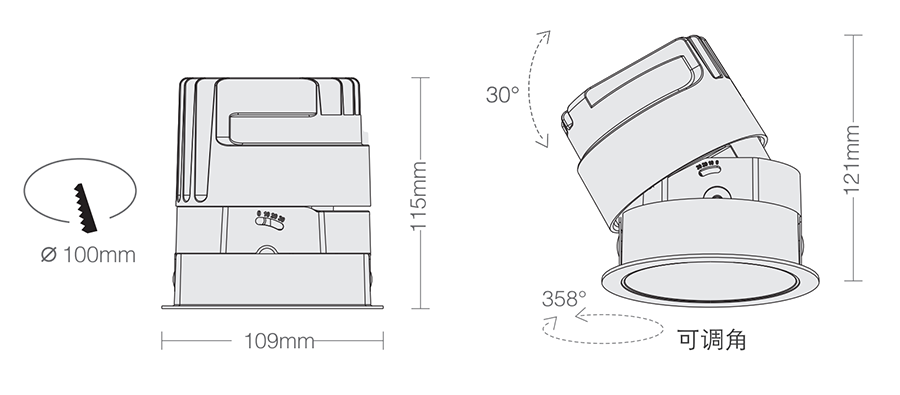 3. Clearance around light fting to be alowed for angular adjustment;保留足够空间以便灯具可作调节角度;