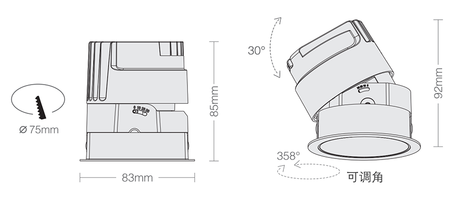 3. Clearance around light fting to be alowed for angular adjustment;保留足够空间以便灯具可作调节角度;