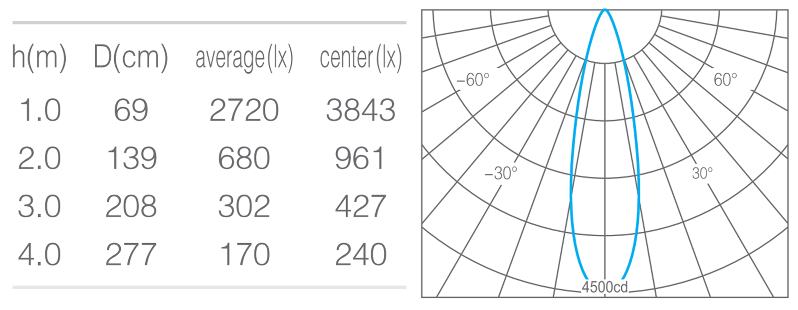 光通量(M) (LUMINOUSFLUX):1619lm、1687lm、1821lm、1821lm (30°)