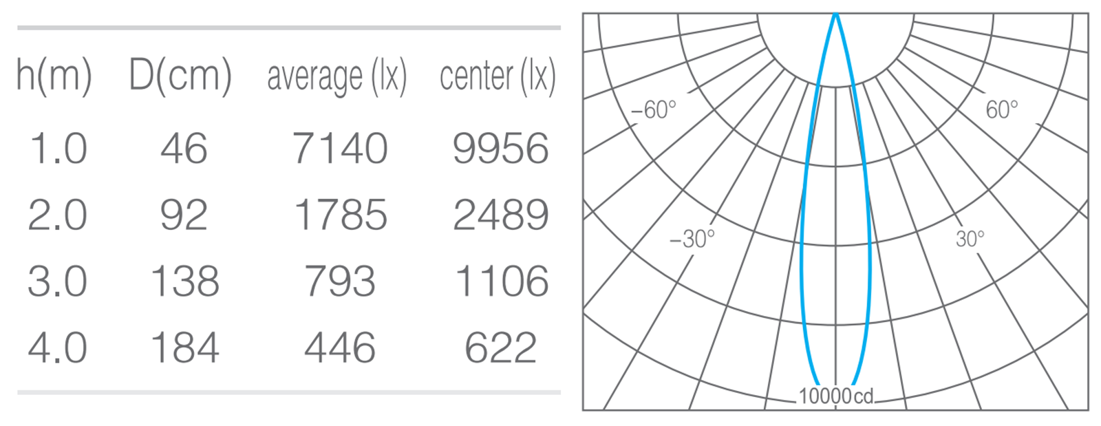 光通量(M) (LUMINOUSFLUX):1861lm、1939lm、2094lm、2094lm (20°)