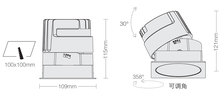 3. Clearance around light fting to be alowed for angular adjustment;保留足够空间以便灯具可作调节角度;
