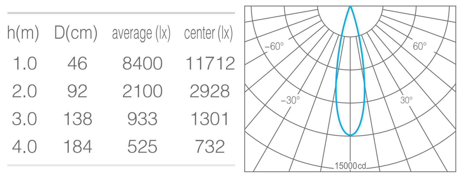 光通量(M) (LUMINOUSFLUX):2190lm、2281lm、2464lm、2464lm (20°)