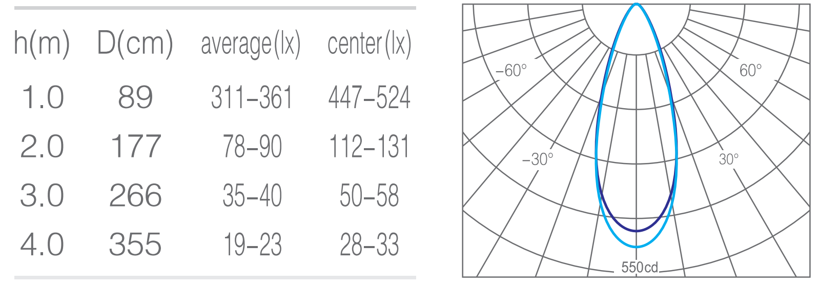 - 光束角50°