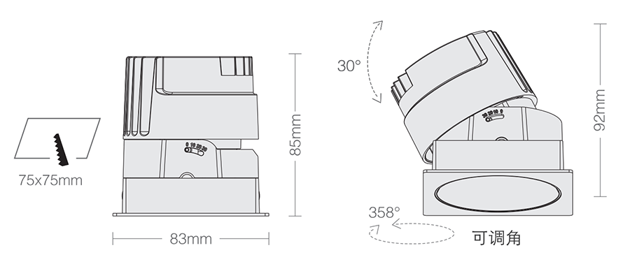 3. Clearance around light fting to be alowed for angular adjustment;保留足够空间以便灯具可作调节角度;